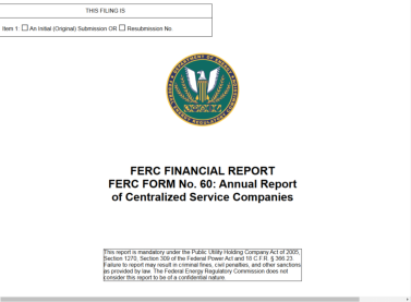 The FERC uses Form 60 to collect information from Centralized Service Companies in the US. Form 60 is authorized by the Federal Power Act and is a regulatory support requirement provided by 18 CFR § 141.51.