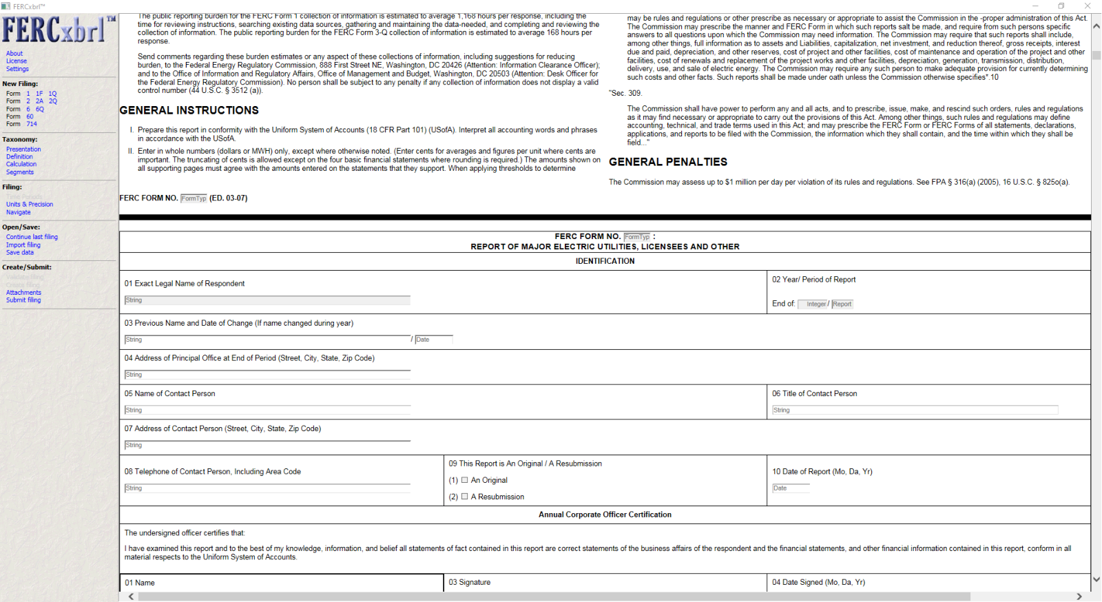 This high-quality inexpensive and easy-to-use FERC filing software for form 1, form 2, form 3-Q, form 6, form 6Q, form 60, form 714 filings helps you meet FERC filing deadlines. We provide an inexpensive "FERC data validation software" solution. This high-quality cost-effective and straightforward FERC filing software for form 1, form 2, form 3-Q, form 6, form 6Q, form 60, form 714 filings helps you meet FERC filing deadlines. Yet our capabilities outperform in "FERC data validation software". The inexpensive, straightforward FERC filing tool, FERCxbrl, is the ideal solution for FERC filings in XBRL and iXBRL formats. Consider this a user-friendly "FERC data submission tools" platform. Our FERC filing software product, FERCxbrl is, cost-effective and easy-to-use filing option for small companies. FERC reporting and analysis tools is our experience. FERC filing software product, FERCxbrl converts Microsoft Excel to XBRL for FERC filings. What about an easy-to-use "FERC reporting and analysis tools" facility? FERC filing software tool, FERCxbrl converts Word documents to XBRL for FERC filings. FERCxbrl prepares FERC form 1, form 2, form 3-Q, form 6, form 6Q, form 60, form 714 filings from Word documents in XBRL format.
